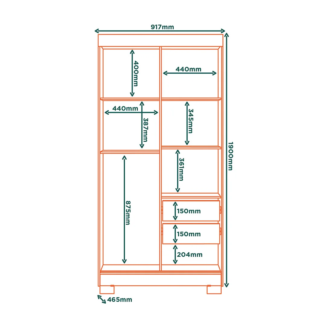 Medidas: 91.7 cm de ancho, 190 cm de alto y 46.5 cm de profundidad