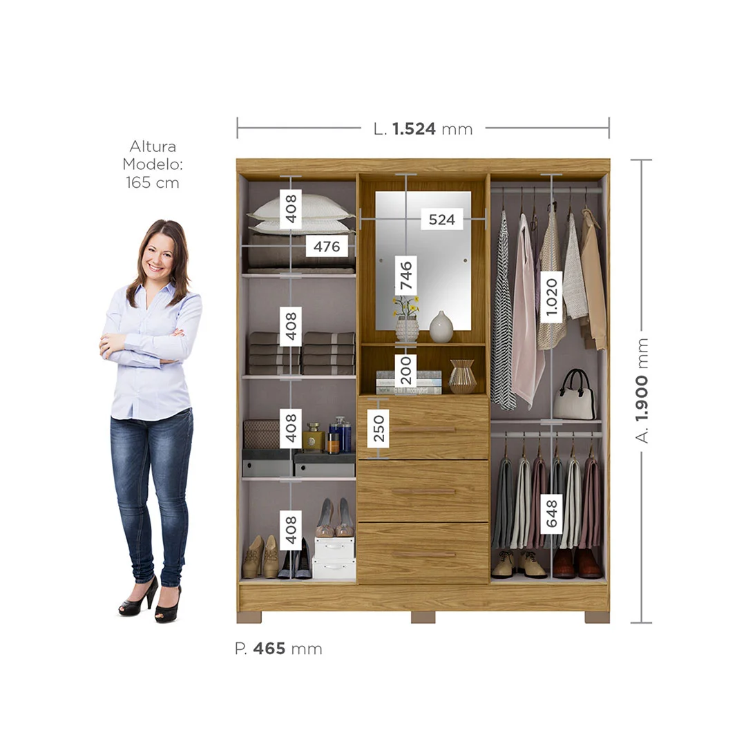 Medidas: 152.4 cm de ancho, 190 cm de alto y 46.5 cm de profundidad