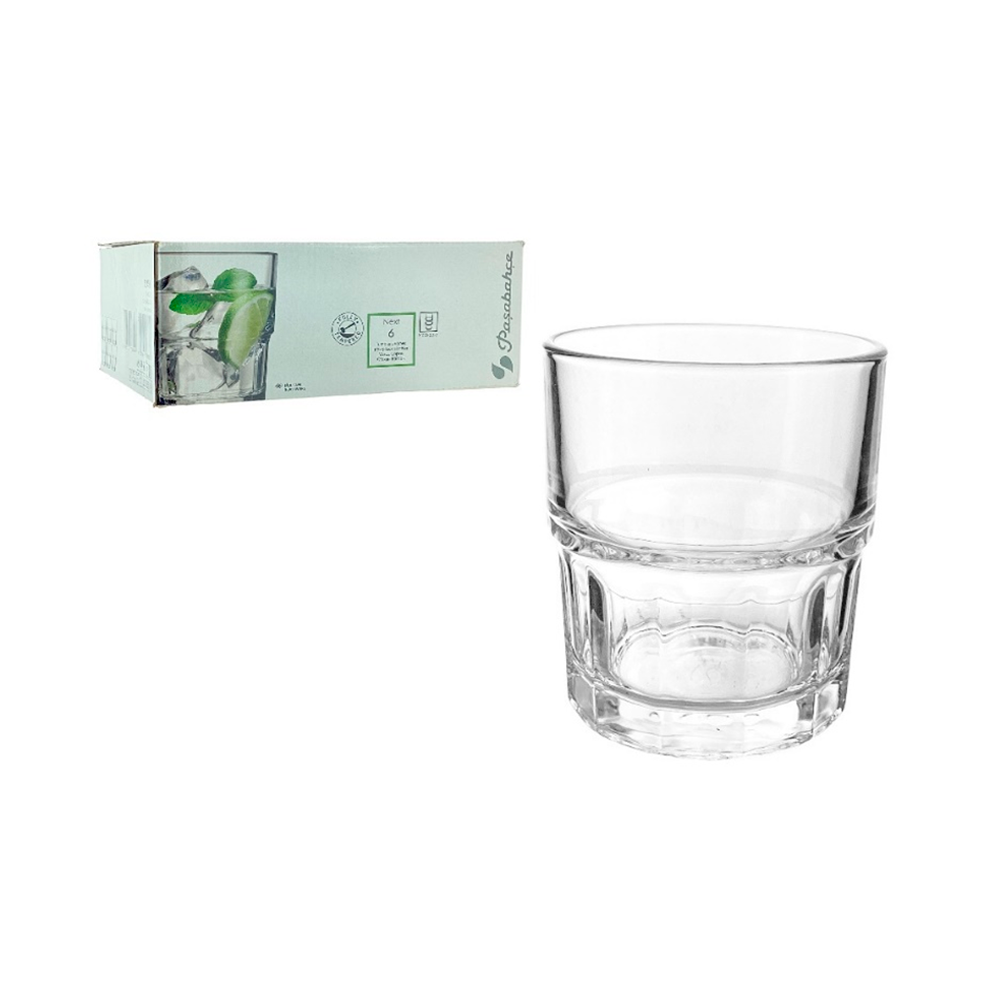 Tiene una forma clásica y funcional que se adapta cómodamente a la mano, el diseño transparente puede ser elegante y versátil, permitiendo que los vasos se combinen fácilmente con diferentes tipos de vajillas y estilos de mesa.
