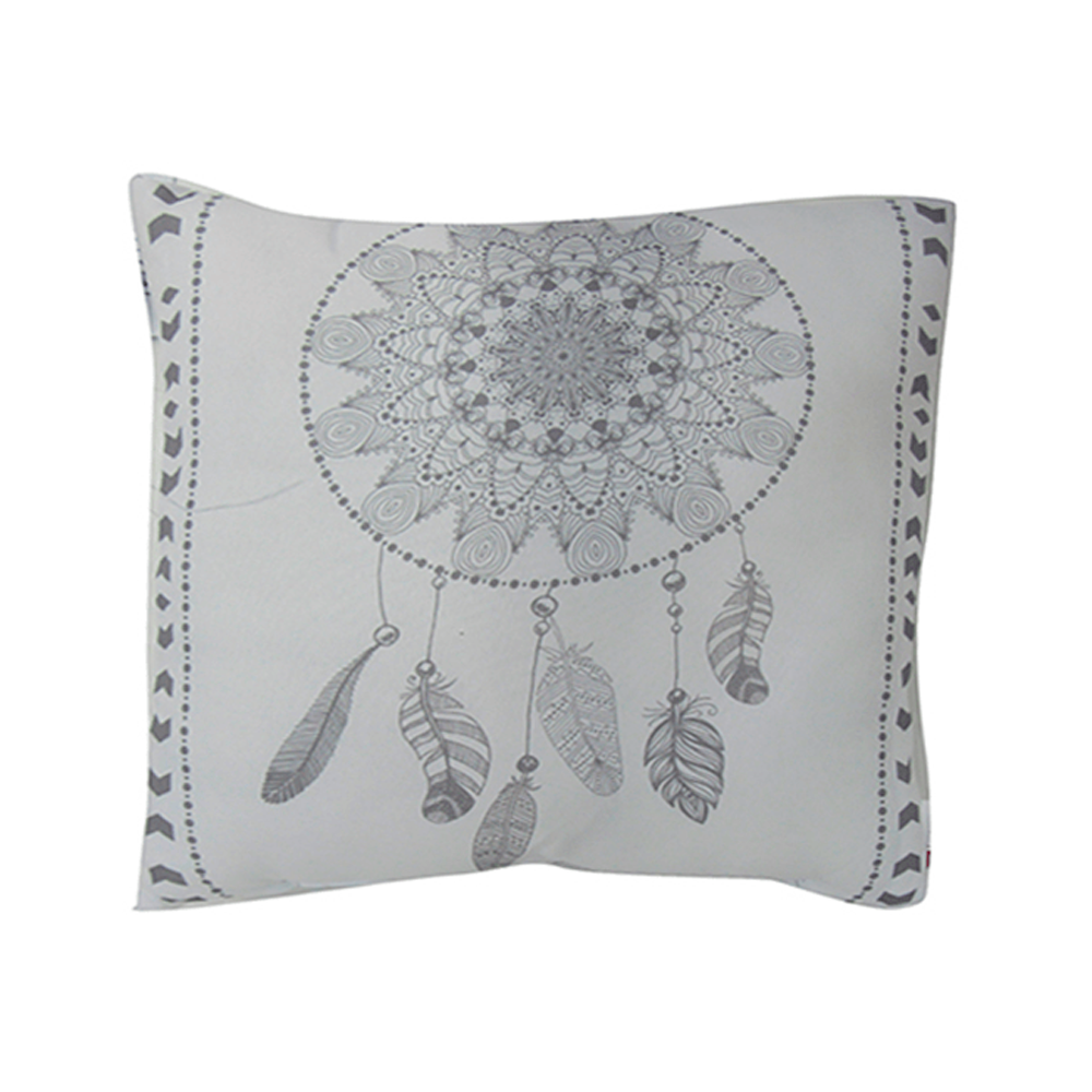 en color blanco con gris es un cojín o almohada de tamaño cuadrado, con unas